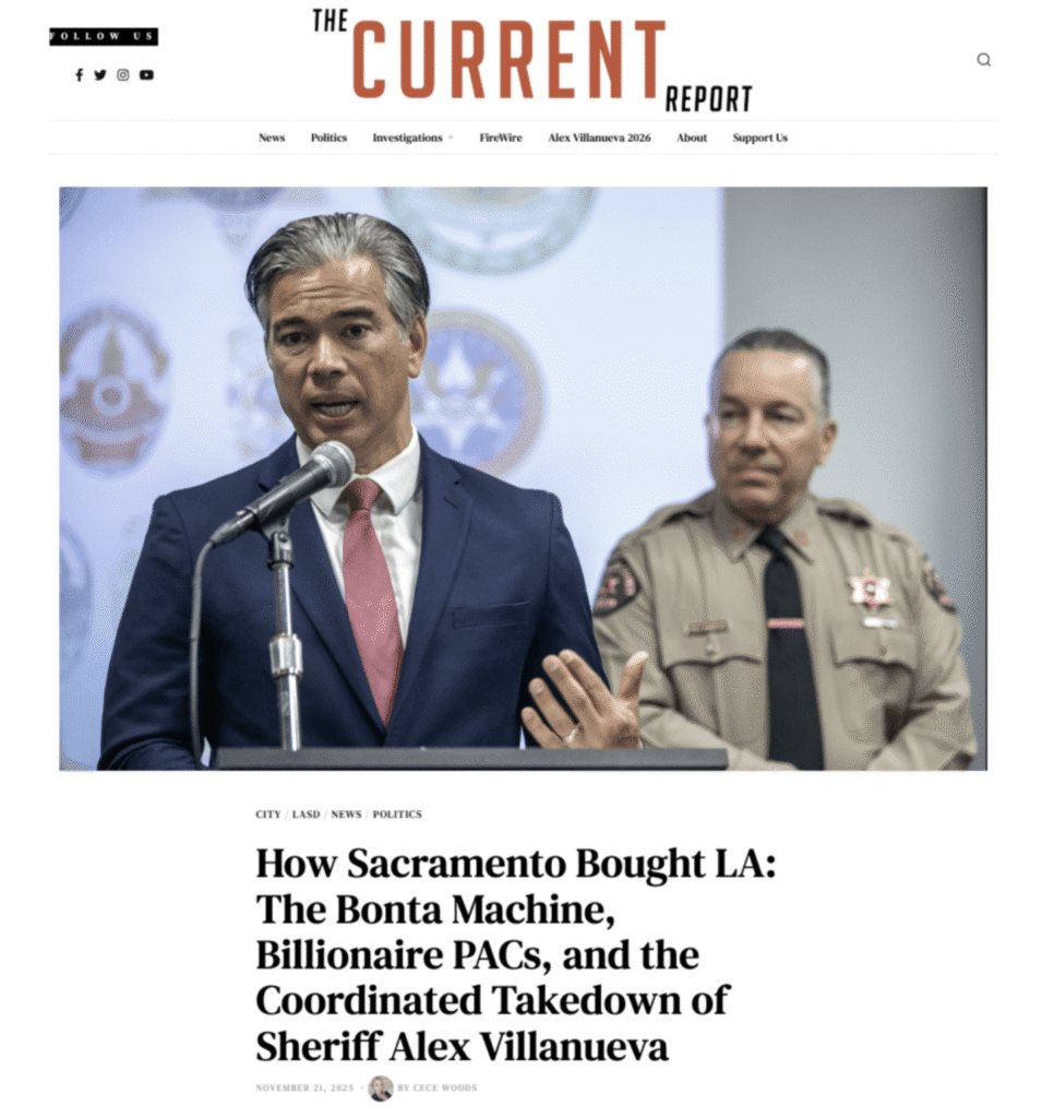 And then there’s Attorney General Rob Bonta, who didn’t just look the other way, he actively suppressed the Los Angeles County Sheriff’s Department criminal investigation into Sheila Kuehl and her central role in pay-to-play contracting at LA Metro, where public funds were routed through nonprofits and consultants tied directly to political allies. At the very same time that investigation was underway, Bonta accepted campaign support from a PAC singularly focused on unseating then-Sheriff Alex Villanueva, the very official whose department was overseeing the probe. That suppression, however, didn’t kill the evidence. The criminal investigation initiated under Villanueva, paired with sustained reporting by The Current Report, migrated east, delivering thousands of pages of documents to U.S. senators and federal watchdog organizations in Washington. The fallout was unmistakable: the corruption trail became impossible to ignore and ultimately forced the withdrawal of Phillip Washington’s nomination to lead the Federal Aviation Administration under the Joe Biden administration, a quiet but devastating confirmation that California’s attempt to bury the scandal collapsed the moment federal sunlight hit the file.