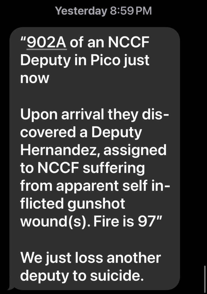 Late Saturday night, a chilling radio call came in: 902A – possible suicide. Responding deputies arrived at the scene in Pico Rivera to find Deputy Hernandez, assigned to the North County Correctional Facility (NCCF), with what appeared to be a self-inflicted gunshot wound. Despite the paramedics efforts, Hernandez died at the scene.