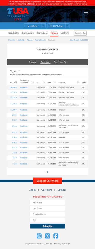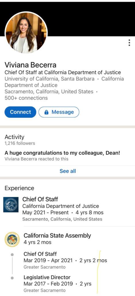 At the center is Viviana Becerra, Attorney General Rob Bonta’s longtime confidante, fixer, and current Chief of Staff. In the official world, she is the polished executive managing the operations of the California Department of Justice. Inside Sacramento’s inner circle, she is far more – the keeper of Bonta’s political ecosystem. But it is the campaign finance filings that finally put her dual roles in stark relief, and the picture isn’t pretty.