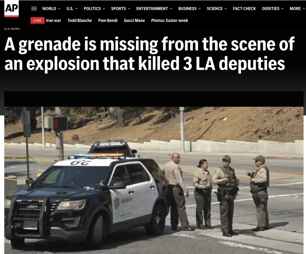 In the immediate aftermath of the explosion, Sheriff Luna made a statement that raised immediate alarm: a second grenade recovered in Santa Monica had gone “missing.” That admission alone pointed to a fundamental breakdown in control and accountability over military-grade ordnance already in law enforcement custody.