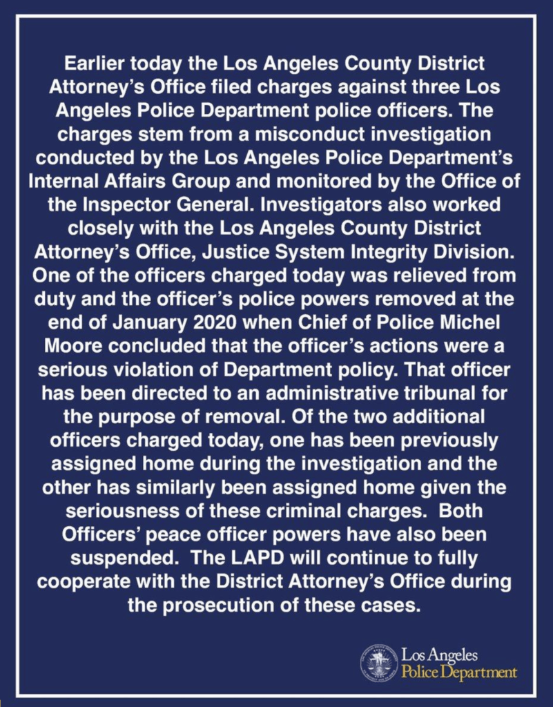 Further evidence of this selective media strategy appears in the department’s handling of three LAPD officers charged with falsifying field interview cards. In that case, Moore strictly adhered to the Police Officer Bill of Rights, shielding the officers’ identities. That professional courtesy was denied in my case.
