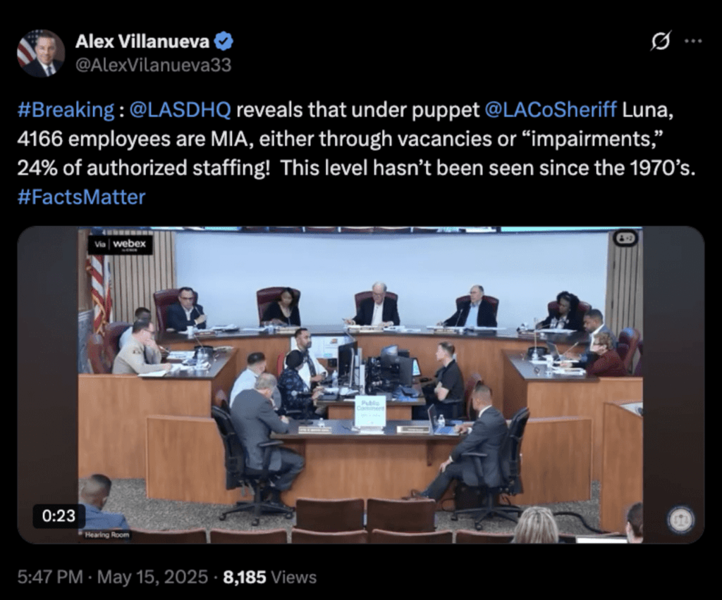 At the same time, law enforcement agencies across Los Angeles are already warning they are understaffed, overextended, and struggling to recruit fast enough to meet even baseline needs. The result is not just a strain on resources, it is a collision course. A department already running on exhaustion will be forced to operate at even higher intensity, with fewer rested deputies, longer hours, and diminished margins for error. That is not a temporary stressor; it is a blueprint for systemic failure.