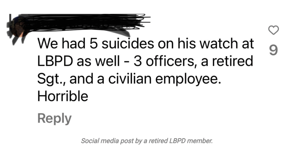 This isn’t Luna’s first rodeo with a mental health crisis. Retired Long Beach PD personnel recall similar patterns under his command there. At LASD, his response to the wave of suicides has been a now-infamous department-wide email filled with platitudes and hotline numbers.