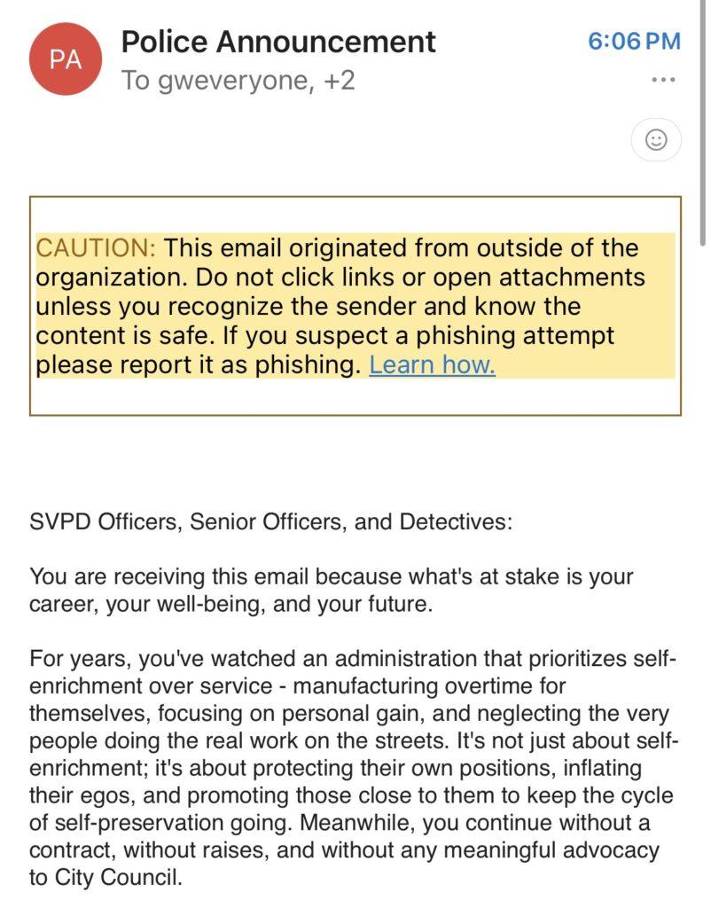 Above: A department wide e-mail sent out in 2025