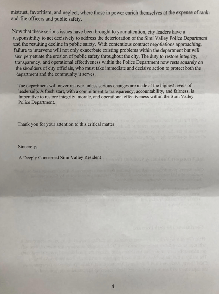 Public scrutiny increased in June 2025 when a letter published in the Simi Valley Acorn called for an independent audit of the department, citing concerns over Assistant Chief overtime expenditures.