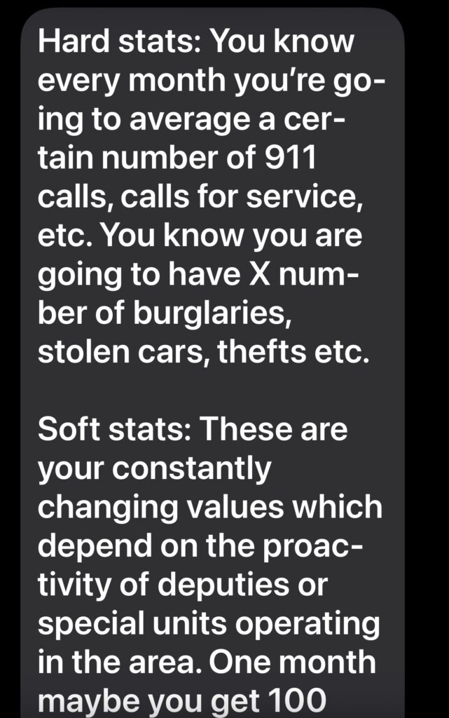 When deputies slow down, crime statistics do too, not because crime is decreasing, but because fewer crimes are being interrupted, fewer arrests are being made, and fewer incidents are formally documented. Hard realities like 911 calls, burglaries, auto thefts, and armed robberies do not magically vanish. What disappears is enforcement.