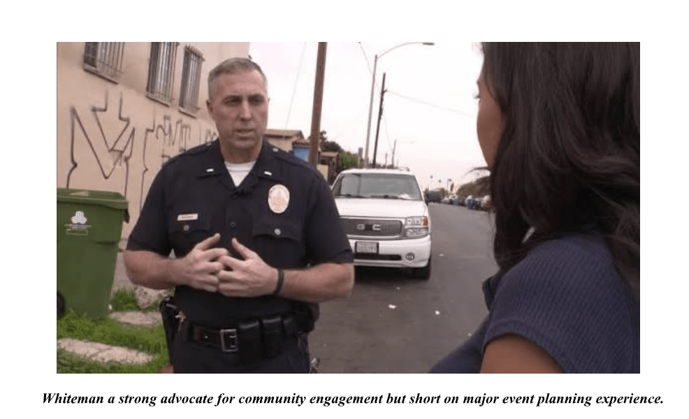 Whiteman’s recent career maneuvers highlight a focus on rank over role. After emerging as a final candidate for the South Pasadena Police Department chief position, he attempted to leverage an opportunity for an upgrade to Deputy Chief as a reward for not leaving, specifically to lead the Olympics planning team.