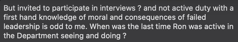 At the same time, active duty deputies are not being broadly polled. The people currently working patrol, custody, and investigations, those dealing firsthand with the consequences of leadership decisions, are not being directly asked where they stand.