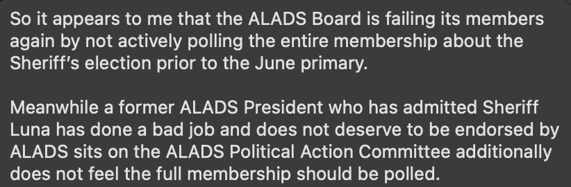 ALADS is not a small organization. It represents thousands of deputies across Los Angeles County. The financial and political power it wields is substantial. That power is derived entirely from its membership. When that same membership is not consulted in decisions of this magnitude, the structure begins to shift.