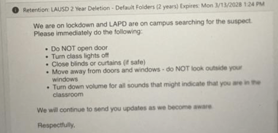 But while the incident ultimately ended without physical harm, what unfolded inside classrooms during that hour paints a far more complicated picture about how prepared the nation’s second largest school district truly is when faced with the possibility of armed violence on campus.