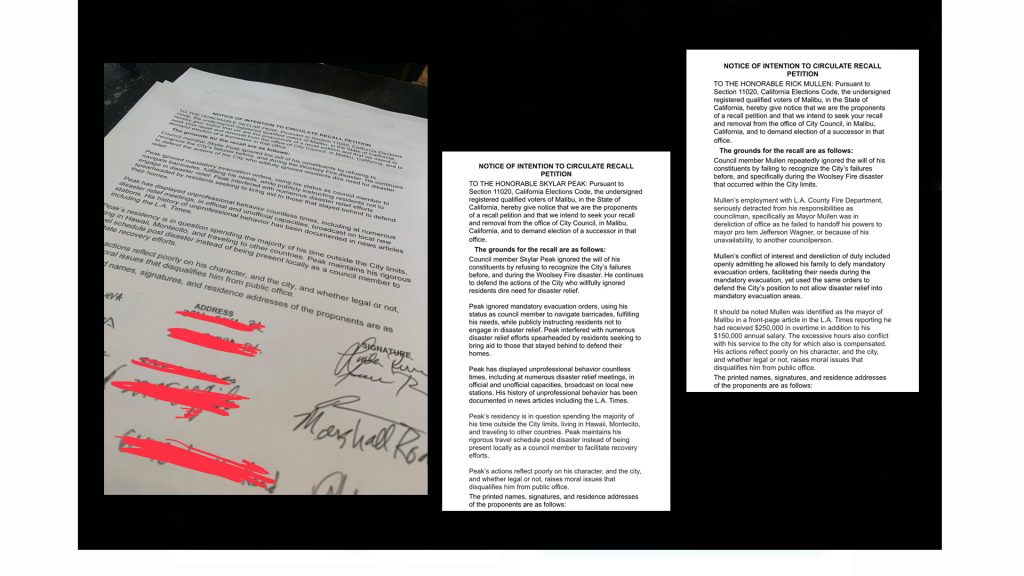 There is no question the lack of leadership by City officials during the Woolsey Fire was instrumental in the initiation of recall efforts by community activists to unseat City council members Skylar Peak and Rick Mullen.